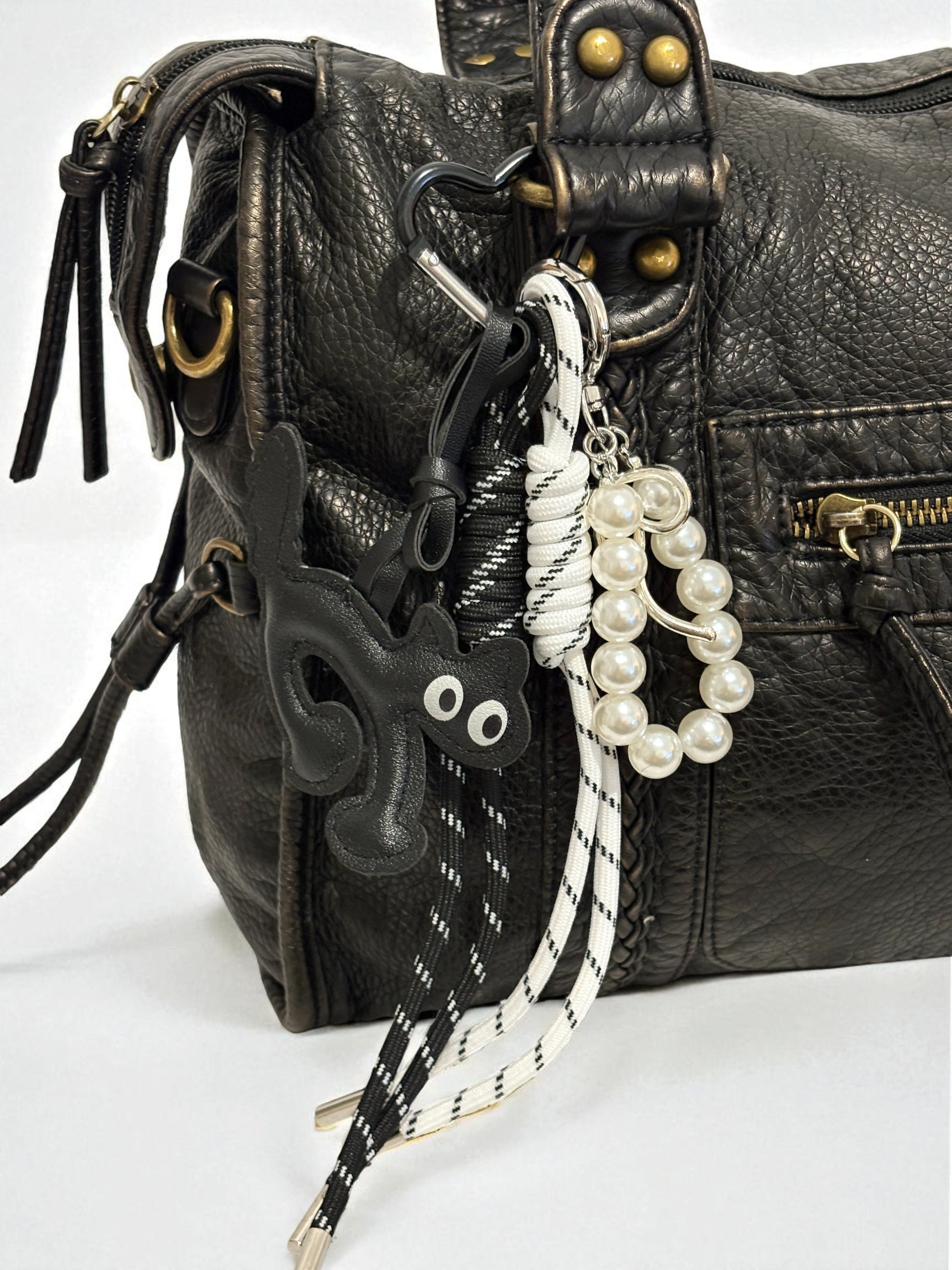 Chaque charm est équipé d’un petit mousqueton. Il suffit de le clipser sur l’un des anneaux métalliques de nos sacs L’Essentiel. Vous pouvez le placer où vous voulez (anse, fermeture, côté…).