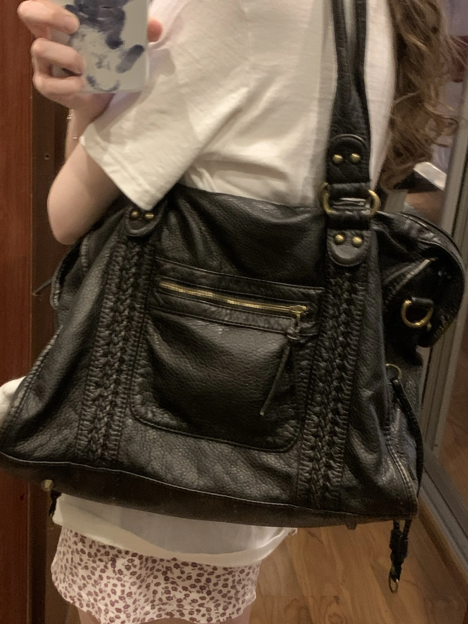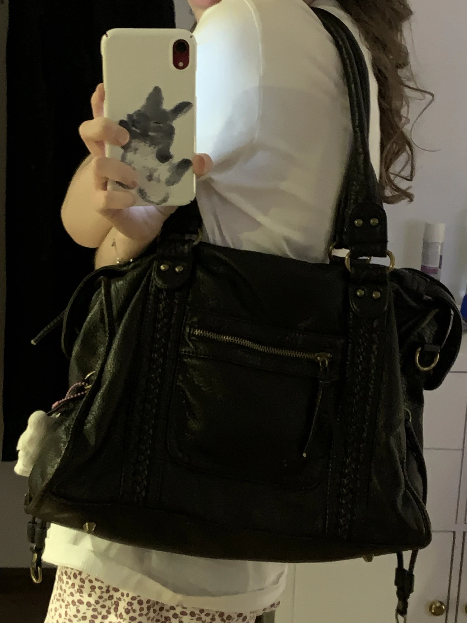 Mieux que ce que j'attendais. Très doux et plus gros que je ne pensais. Accueille un carnet A4 et un iPad 10e génération. 10.9 et il reste encore beaucoup d'espace !!! J'aime porter beaucoup de choses avec moi, donc c'est un plus. Je pense que avec ce sac, vous pourriez même aller quelque part pour le week-end et y mettre toutes les choses nécessaires. La poche latérale convient à un iPhone XR.