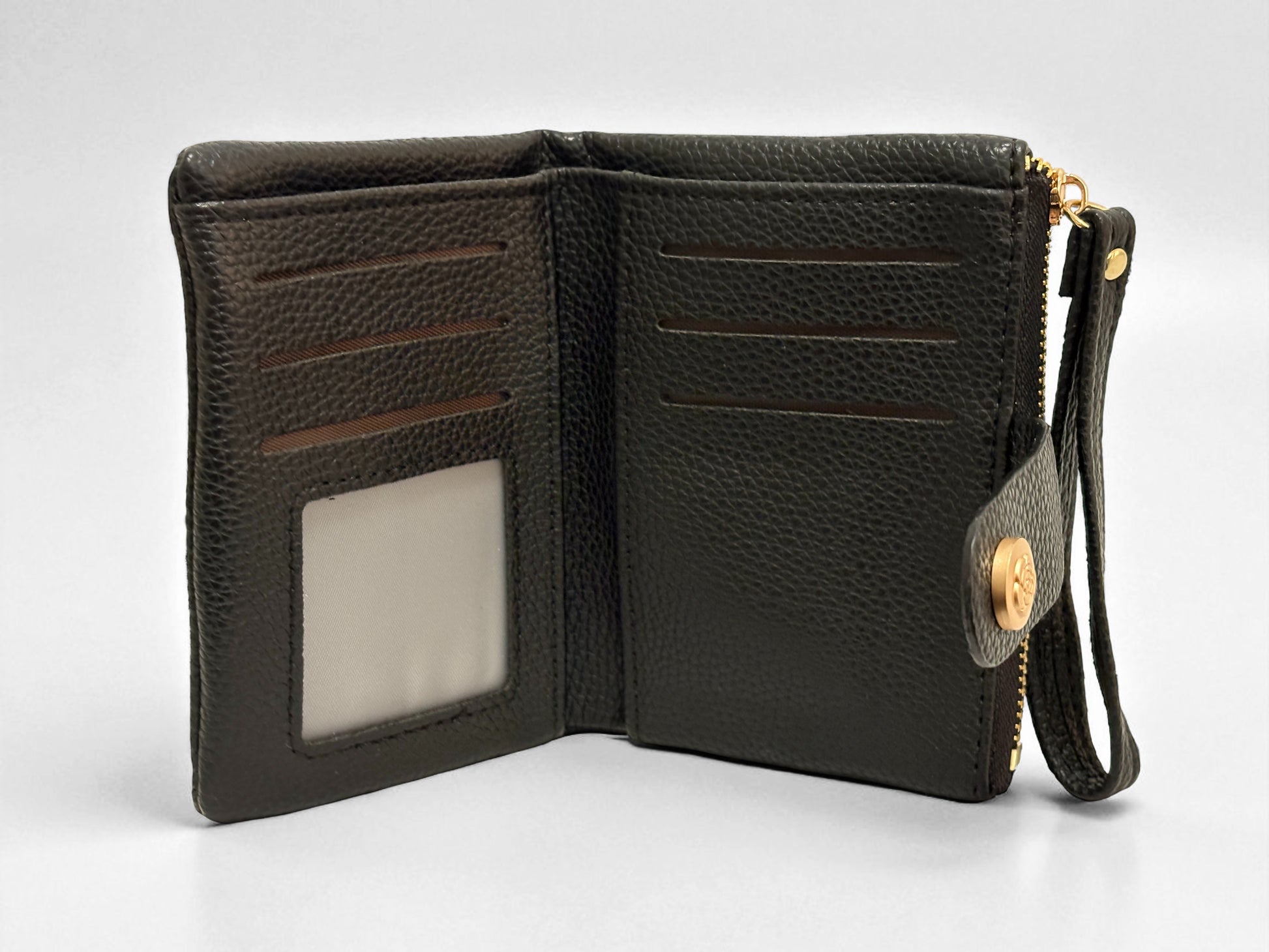 Tandis que le porte-monnaie coordonné complète parfaitement l’ensemble.